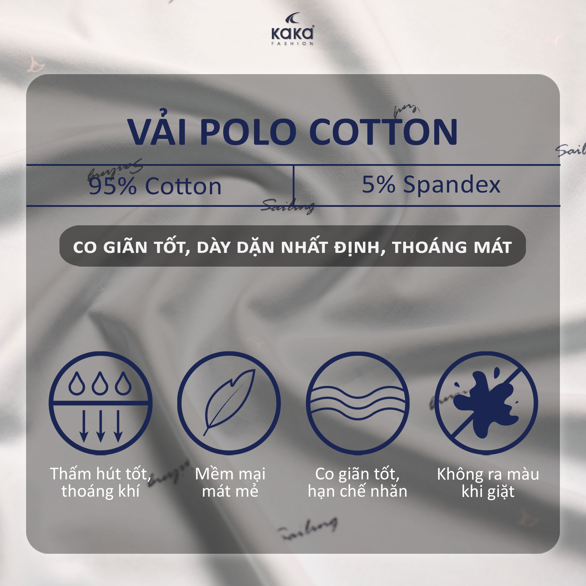 CHẤT LIỆU: 95% cotton, 5% spandex. Sớ vải Dày dặn, 230gsm. Kết cấu sợi dệt mịn, giúp thoáng khí.
