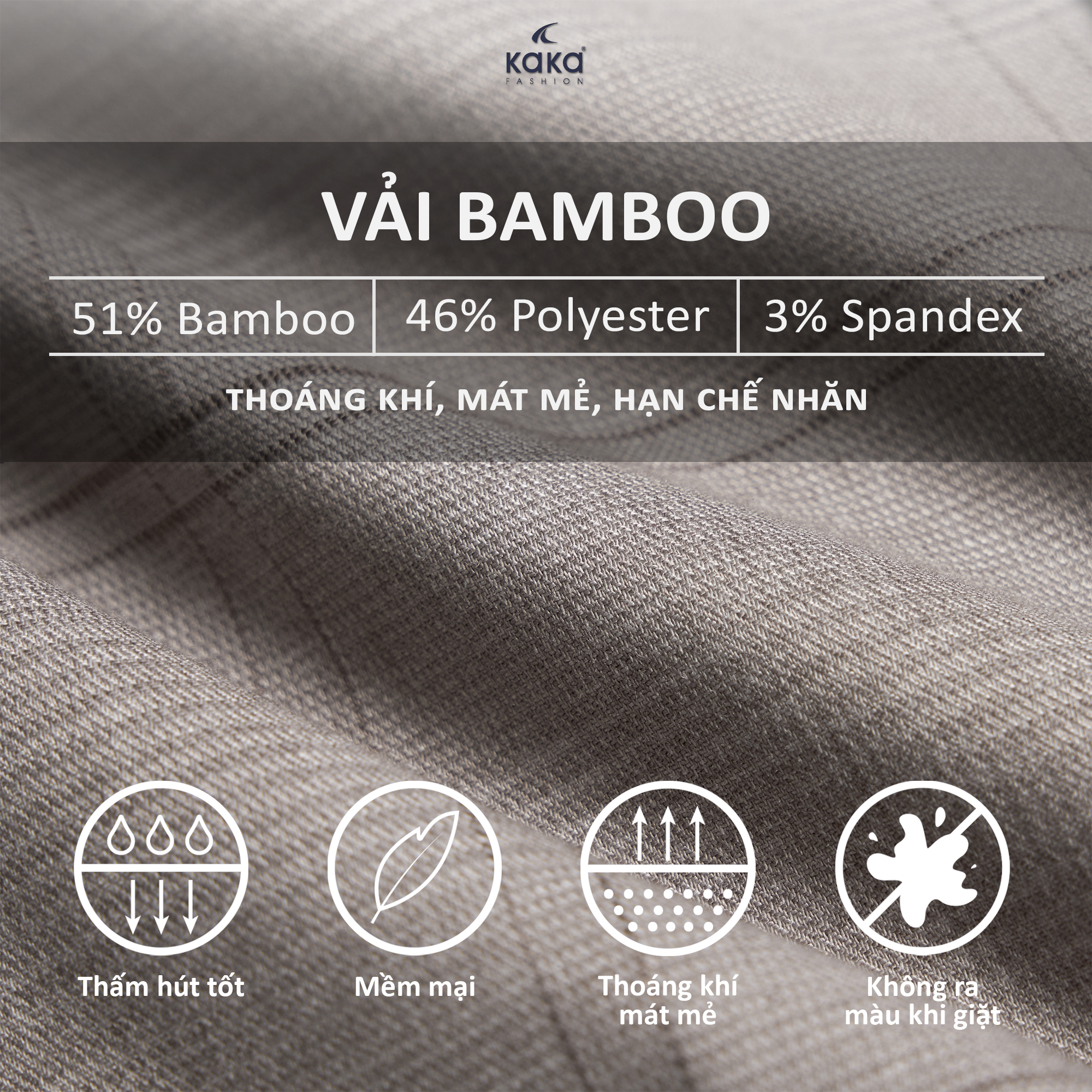 CHẤT LIỆU: Chất vải bamboo (từ sợi tre) 51% Bamboo, 46% Polyester, 3% Spandex có bề mặt trơn láng, mịn màng và cảm giác mềm mại. Do có nguồn gốc từ thiên nhiên, bamboo thường được coi là thân thiện với môi trường