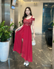 Đầm maxi trễ phối ren xẻ tà sang trọng