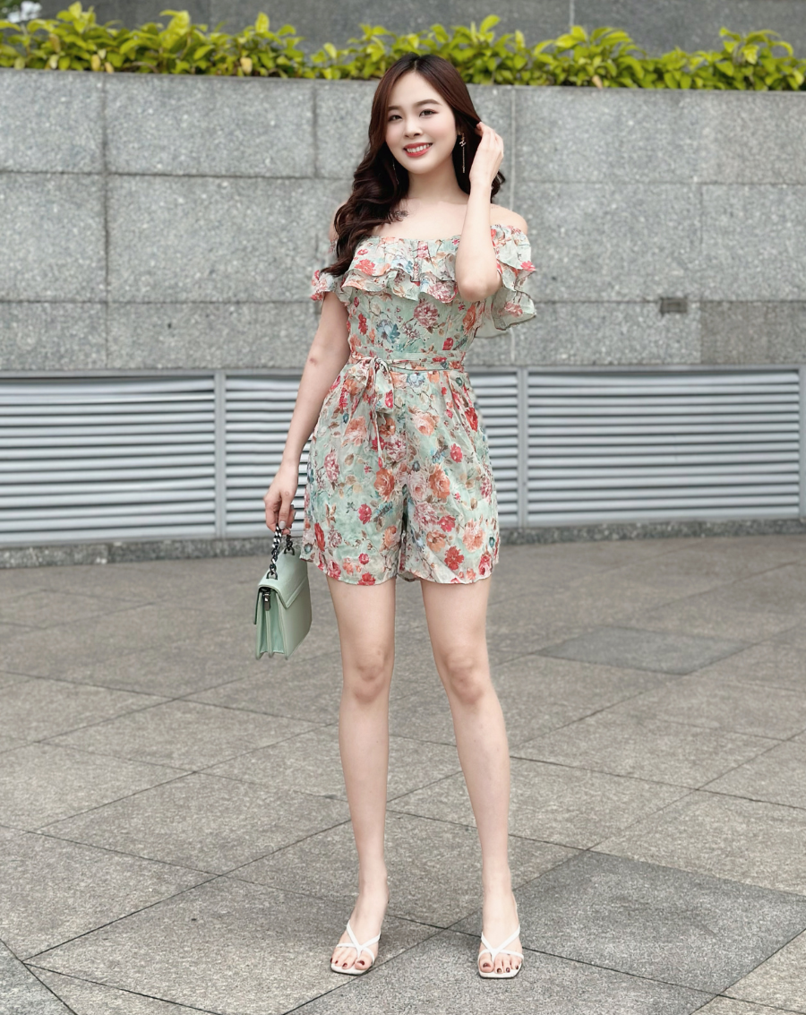 Thiết kế hoa tiết là một lựa chọn phù hợp cho các dịp thường ngày, đi chơi cùng bạn bè, đi du lịch, hay tham gia các buổi tiệc nhẹ nhàng. Kiểu dáng Jumpsuit trễ vai mặc được 3 dáng, tạo nên nét thời trang riêng biệt và phù hợp với nhiều phong cách khác nhau.