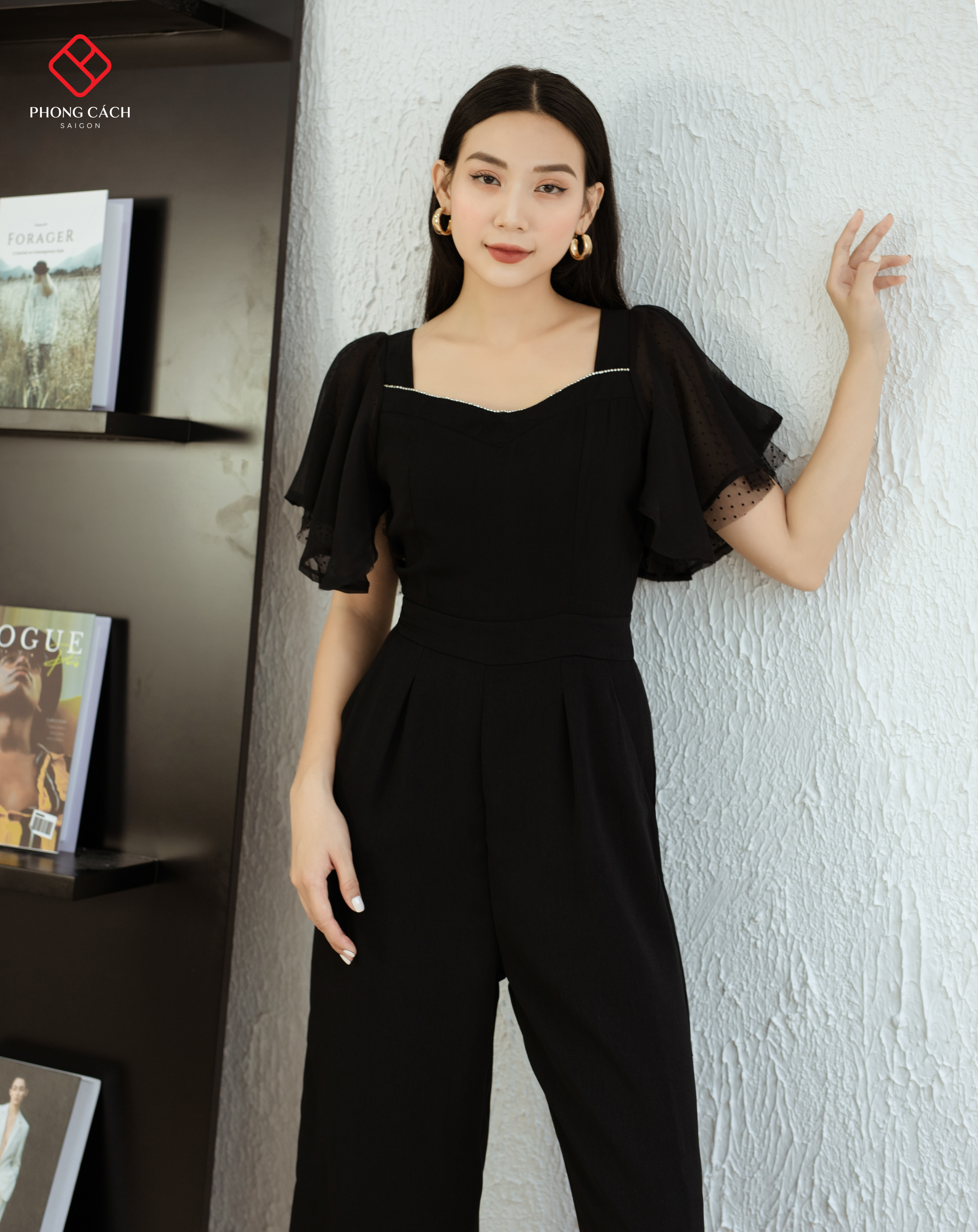 Jumpsuit thiết kế tay cánh tiên phối đá