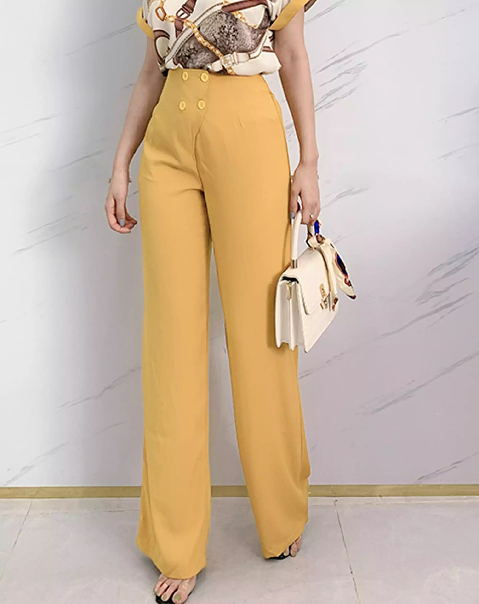 Chất liệu chính của quần là cotton lạnh, mang lại cảm giác mát mẻ và thoải mái khi mặc. Quần dài ống rộng eo cao 4 nút với hai màu sắc bao gồm đen và vàng, cho phép bạn lựa chọn theo sở thích cá nhân và phong cách của mình. Kiểu dáng ống rộng và eo cao giúp tôn lên vẻ thanh lịch và phong cách hiện đại.
